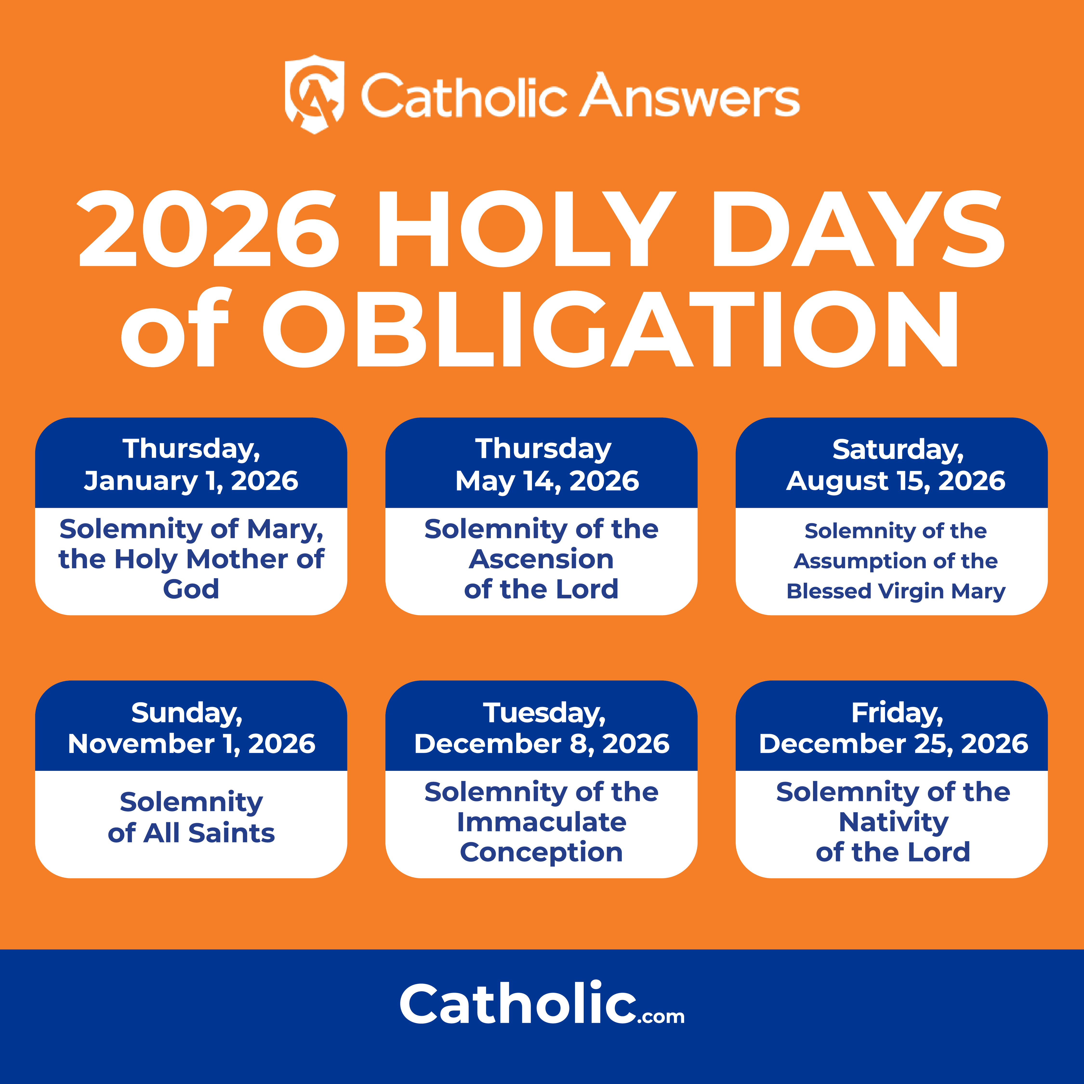 - Is Today a Holy Day of Obligation? Check the USCCB 2025 calendar, or the 2026 calendar.